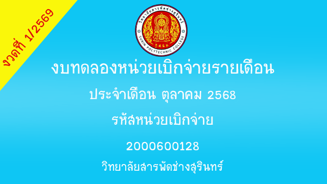 เนื้อหาก่อนหน้า: รายงานงบทดลองหน่วยเบิกจ่าย งวด 2 ปี 2569 เดือนพฤศจิกายน 68