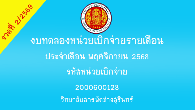 เนื้อหาถัดไป: รายงานงบทดลองหน่วยเบิกจ่าย งวด 1 ปี 2569 เดือนตุลาคม 68